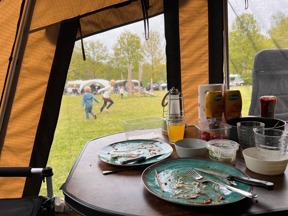 Onze sleurhut ( vouwwagen) Onze sleurhut ( vouwwagen) We hebben eerst een keertje geoefend met opzetten.......... de Geitjes op de camping zijn favoriet de Geitjes op de camping zijn favoriet Jesse heeft gewonnen met Uno Op de camping hoort natuurlijk ook afwassen Wel een beetje gek dat je voor het douchen en tandenpoetsen en de wc naar het toilet gebouw moet Lekker macaroni met knakworstjes
